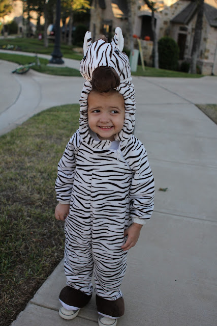 Bridge was so cute in his zebra costume! But Channing said when they got to their house to actually trick-or-treat he would NOT put on his zebra head!! Little stinker! But at least we got a few pics- that's what it's really all about!